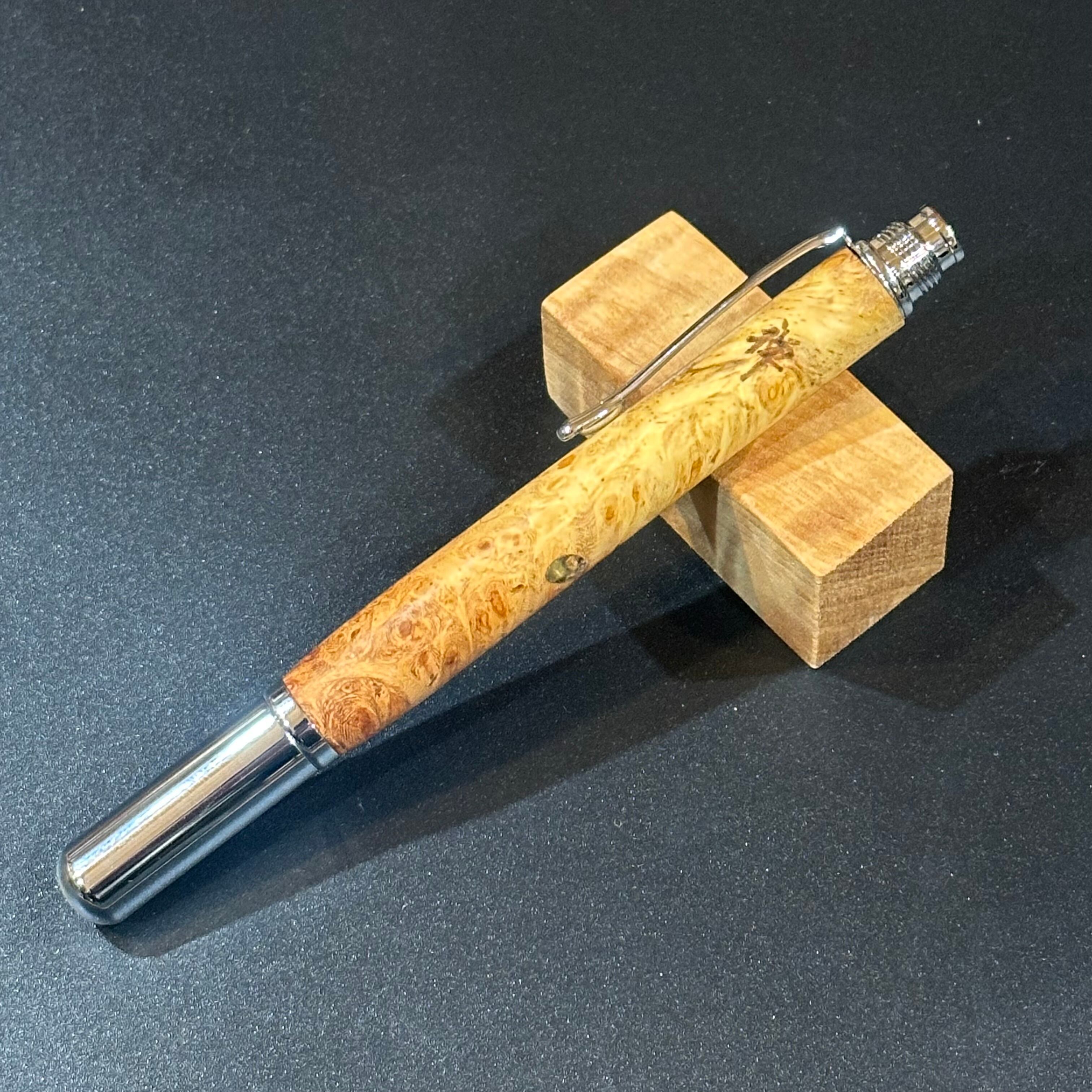 花梨瘤を使用した萬年筆です。萬年筆BASE初出品特別価格となります。穴を修復しておりますのでアウトレットでの出品となります。